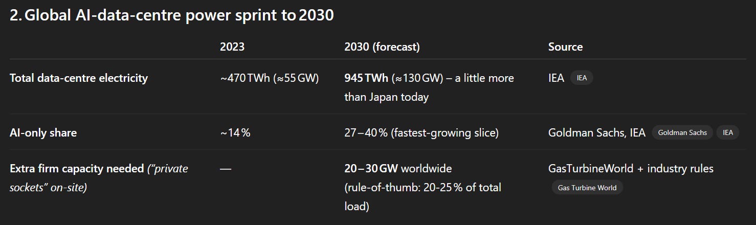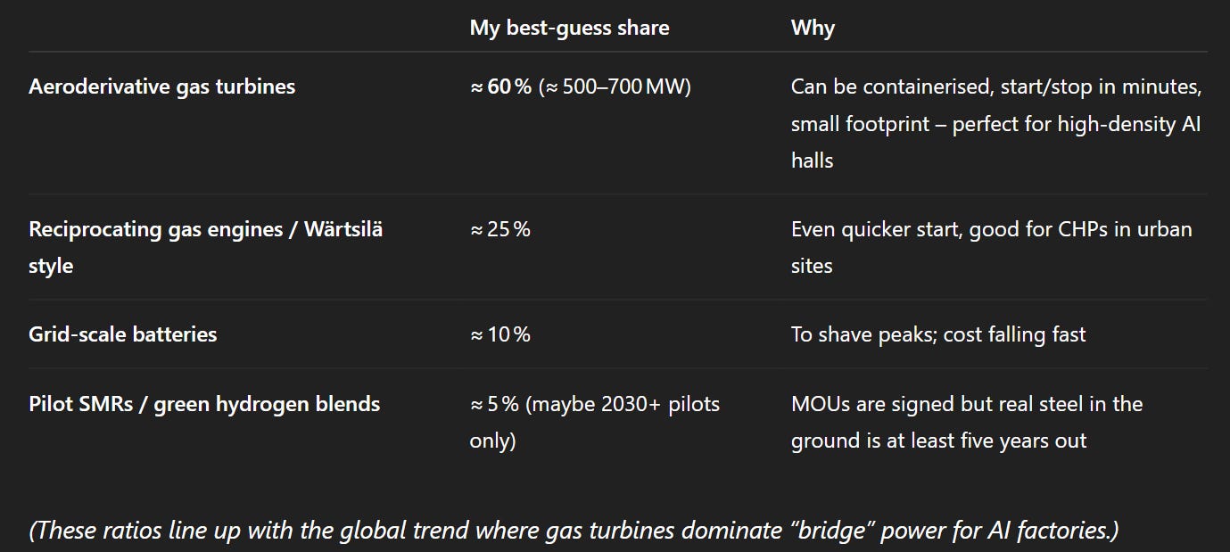 “Bring your own power plant.” Instead of waiting years for a substation upgrade, hyperscalers are buying ready‑made gas units and parking them next to server halls.