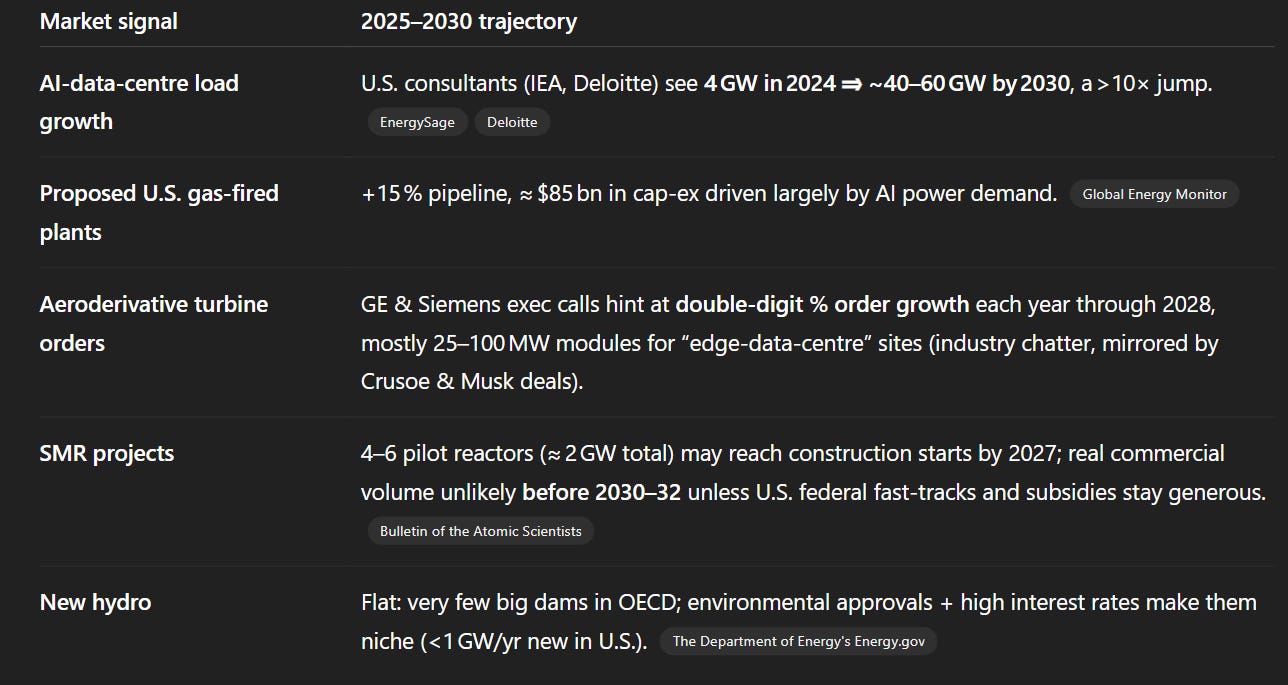 Looking further ahead, small modular nuclear reactors or hydrogen‑fired turbines could take over after 2030.