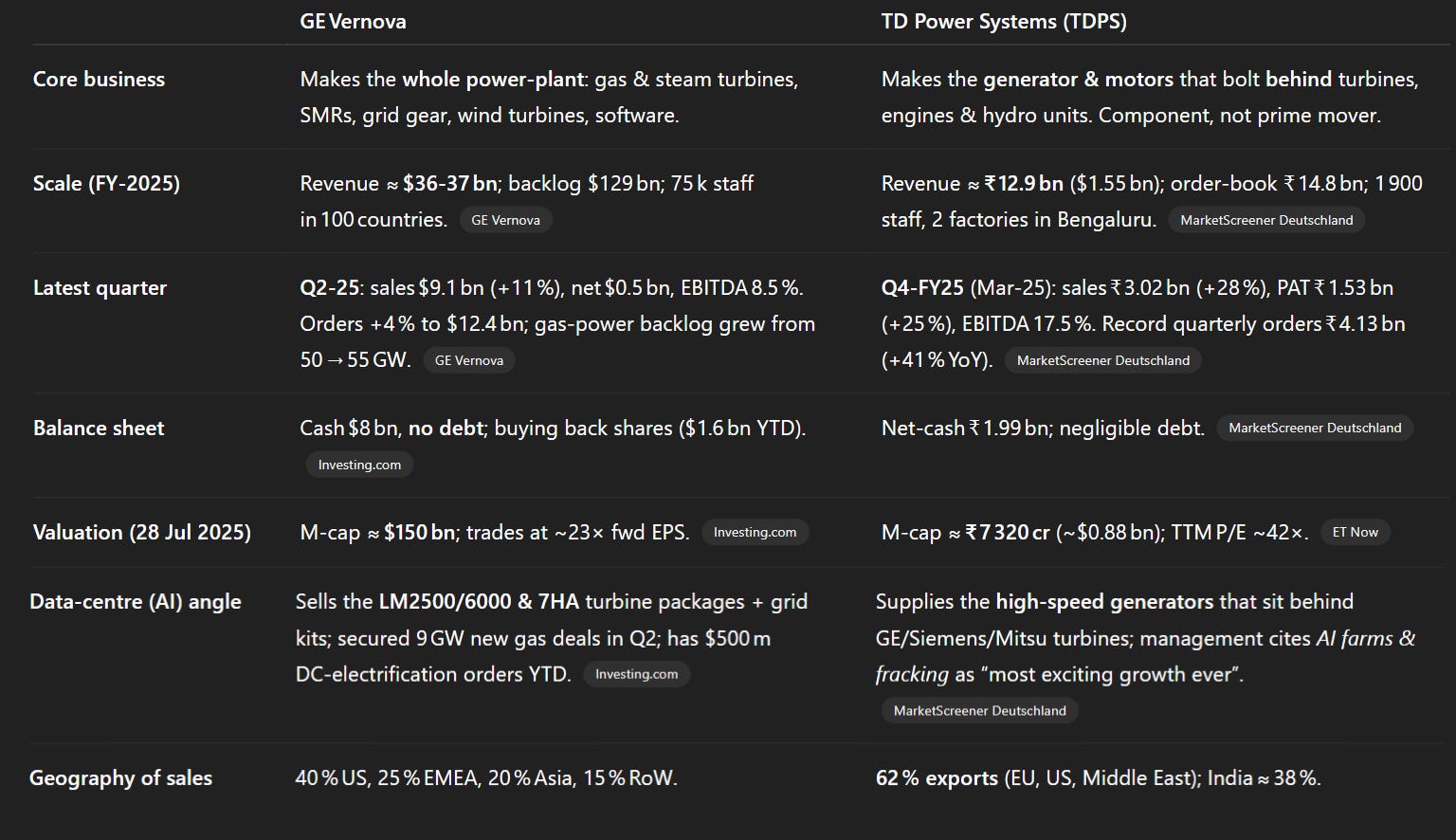 If you want an Indian‑listed beneficiary of the “jet‑engines‑for‑AI” theme, TD Power Systems offers the cleanest link; GE‑branded India stocks do not.